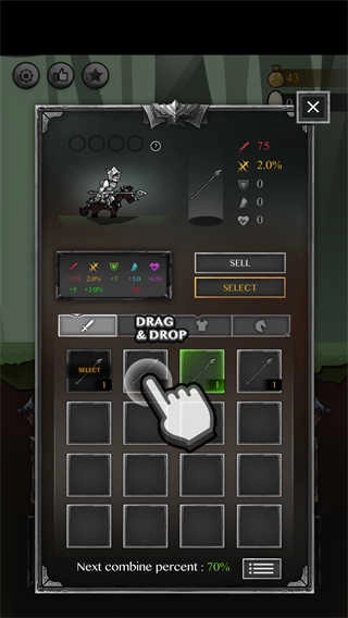 4、装备升级的操作十分简便,采用合成机制,只要把相同的武器拖拽到一块,就能完成合成并实现升级。