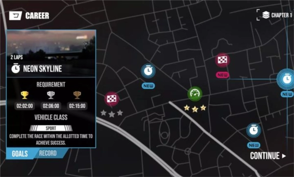 6、在霓虹闪烁的夜晚世界中,玩家通过持续挑战并解锁全新内容,将亲手谱写专属于自己的赛车传奇篇章。