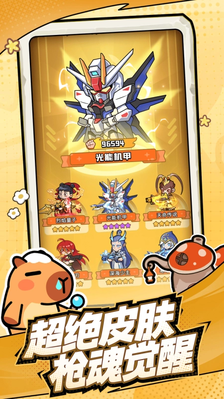 在战斗进程里,你会持续升级、探索,随着战斗经验的积累,不管是释放出爆炸火球范围伤害的小火龙,还是射出冰刃带来极寒效果的忍者龟,亦或是表面上全程划水实则能瞬间冻结一切、辅助能力拉满的卡皮巴拉……与你一同作战的萌宠军团会从幼年形态逐步进化,最终成长为究极形态!