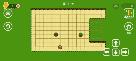 玩家只需点击上键,仙人球便会向上移动一格;点击右键,仙人球则会自动右转并前进一格。操作十分简单,快来试试吧。
